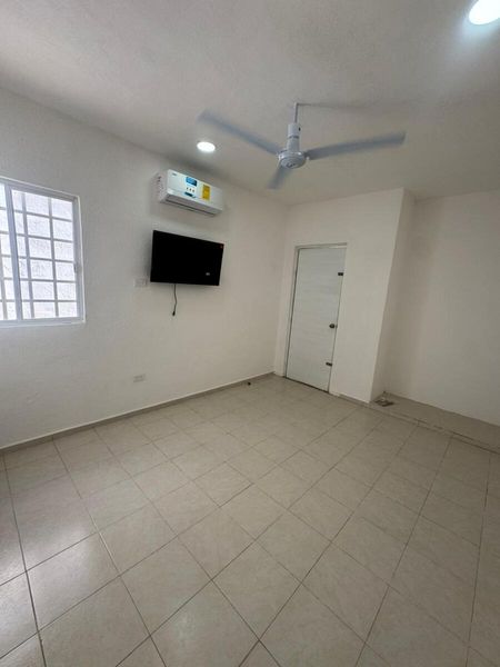 Sala y comedor corridos, con ventilador. 1 recámara con A/A y ventilador nuevos.